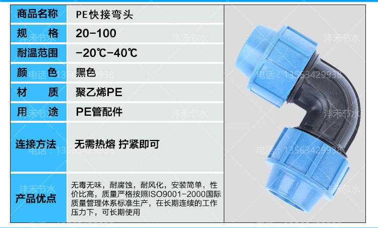 PE弯头 外接弯头快速接头 滴管喷灌管材外联接管件